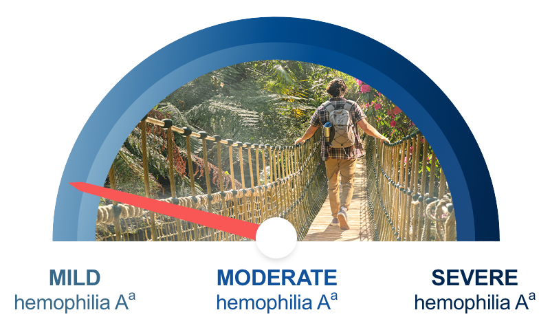 aThe World Federation of Hemophilia defines the percentage of normal factor activity in blood in mild hemophilia as 5% - 40%; in moderate hemophilia as 1% - 5%; and of severe hemophilia as >1%. bBased on PK modeling from PK assessments that were obtained from 8 previously treated patients (PTPs) aged ≥18 years with severe hemophilia A who participated in a Phase 1 open-label study, 23 PTPs aged ≥12 years with severe hemophilia A who participated in a Phase 3 open-label study, and 18 PTPs aged ≥18 years with severe hemophilia A who participated in a Phase 1 double-blind study; all received routine prophylaxis (50 IU/kg every 4 days). All PK assessments were based on a 50 IU/kg dose.1