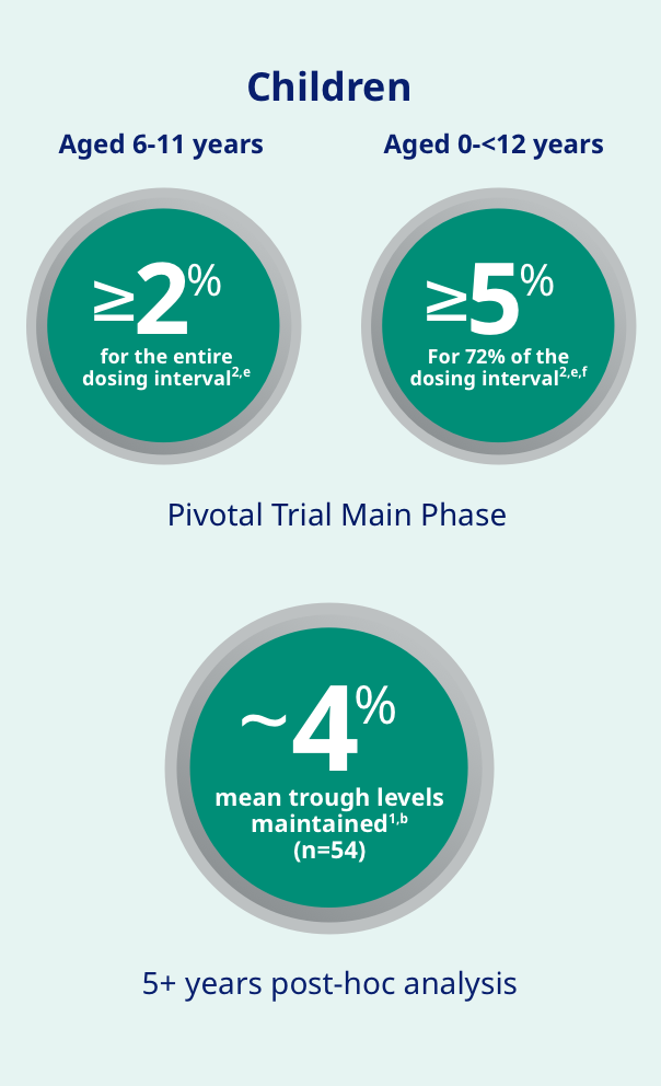 | Post-hoc data analysis shows a stabilization in mean FVIII trough levels over time for all ages with Esperoct®.1,a,b |