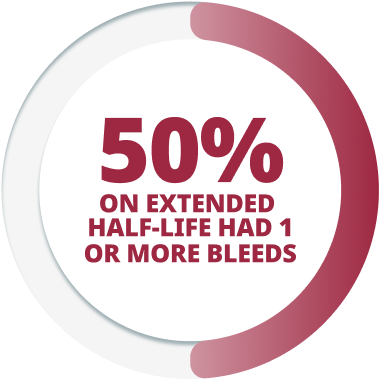 | If you live with hemophilia A and still experience breakthrough bleeds, you’re not alone. A recent survey found that half of respondents treated using extended half-life medications had one or more bleeds within a year.a |