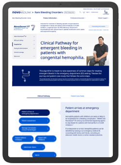 | Explore novoMEDLINK™ for bleeding disorders tools and resources built for your hospital team. You’ll find information on treating a broad range of bleeding disorders with NovoSeven® RT. You can also access a dosing calculator for bleeding episodes, clinical pathways for emergent bleeds and acquired hemophilia, and more educational resources. |
