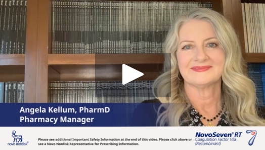 | Angela Kellum, a hospital pharmacist at Tulane University School of Medicine, explains how NovoSeven® RT was chosen as part of the comprehensive treatment plan for a patient with Glanzmann’s Thrombasthenia with platelet refractoriness. |