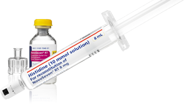 | cPrior to reconstitution, store NovoSeven® RT powder and histidine diluent between 36-77°F. After reconstitution, store NovoSeven® RT either at room temperature or refrigerated for up to 3 hours. Do not freeze reconstituted NovoSeven® RT or store in syringes.1 |