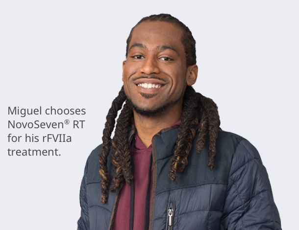 He also lives with hemophilia B with inhibitors. See Miguel’s Story. Miguel has been choosing NovoSeven® RT as his rFVIIa treatment for over 20 years. Why? |